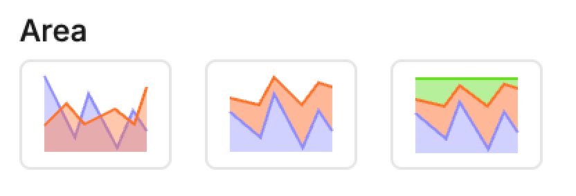 • Color → Splits the area into series, enabling stacked or 100% stacked variations.