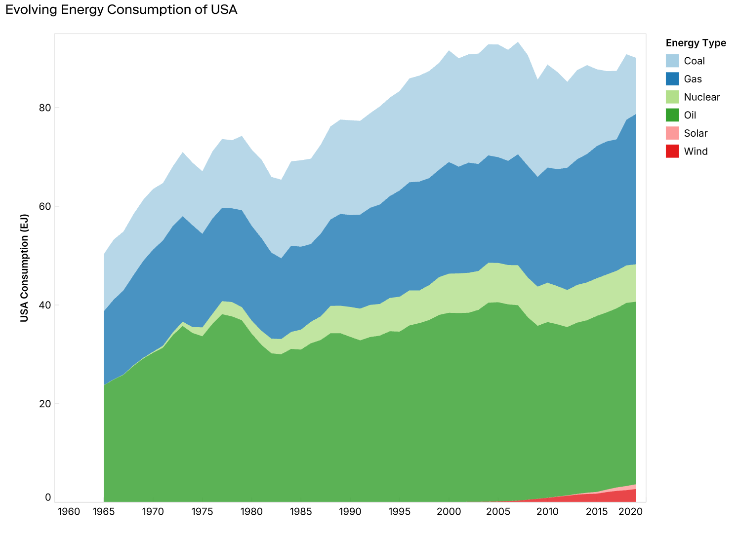 3. 100% stacked area → normalizes to percentages, showing relative contributions across categories.