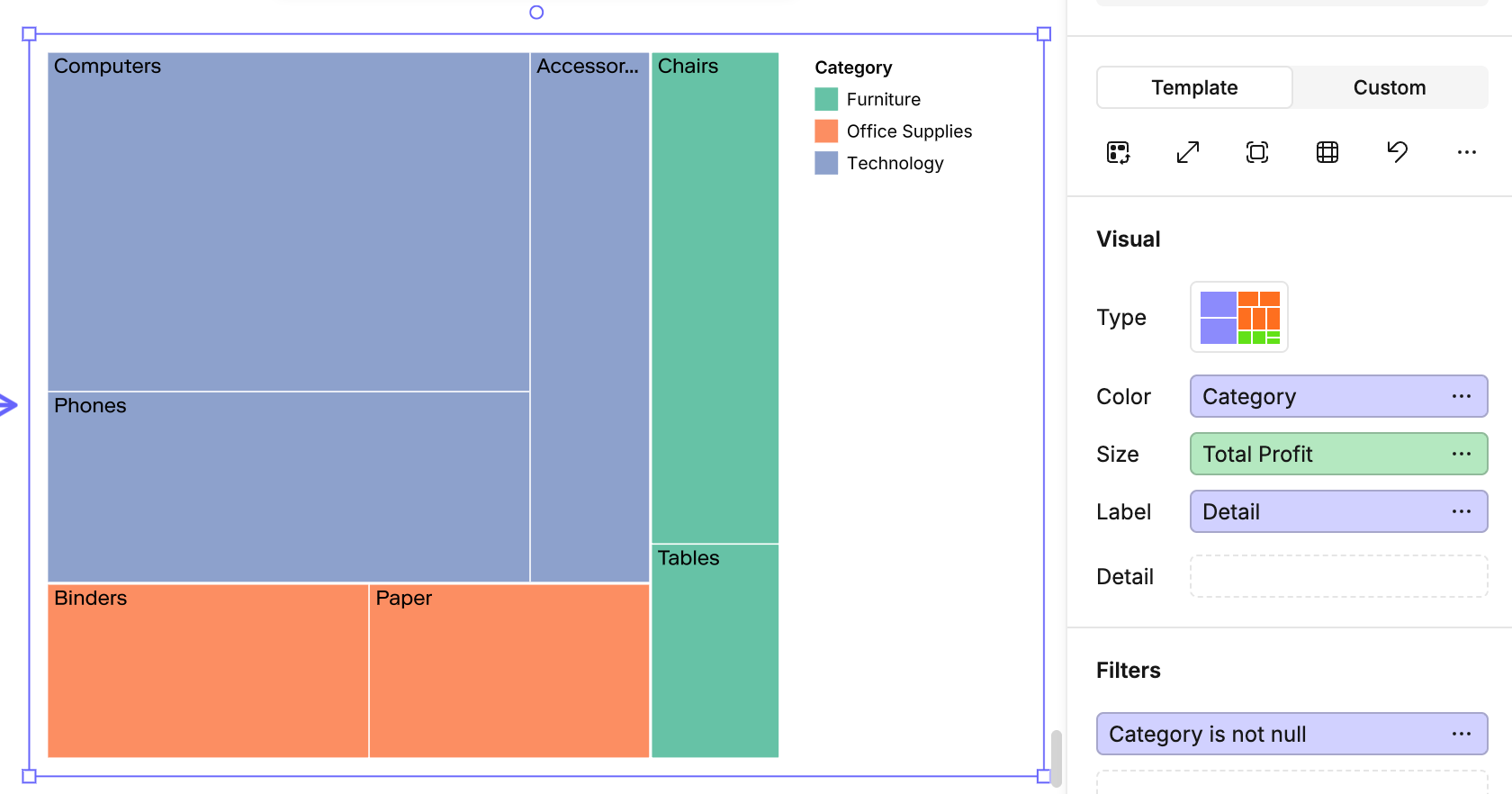 • Avoid too many small values—they can create clutter and make shapes too small to interpret.