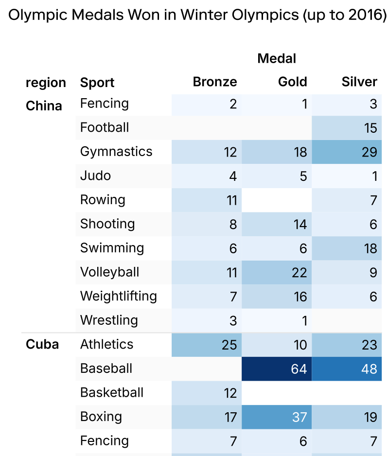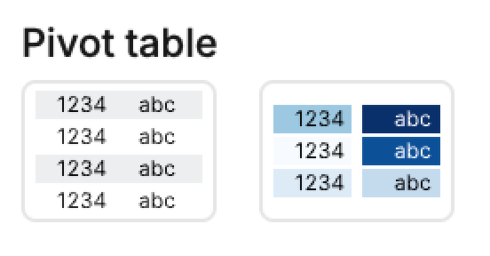 2. Pivot table with color → adds conditional formatting to highlight differences or ranges in the data.