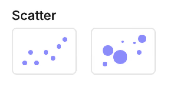 • Bubble scatter → plots points by X and Y, with size mapped to a third measure.