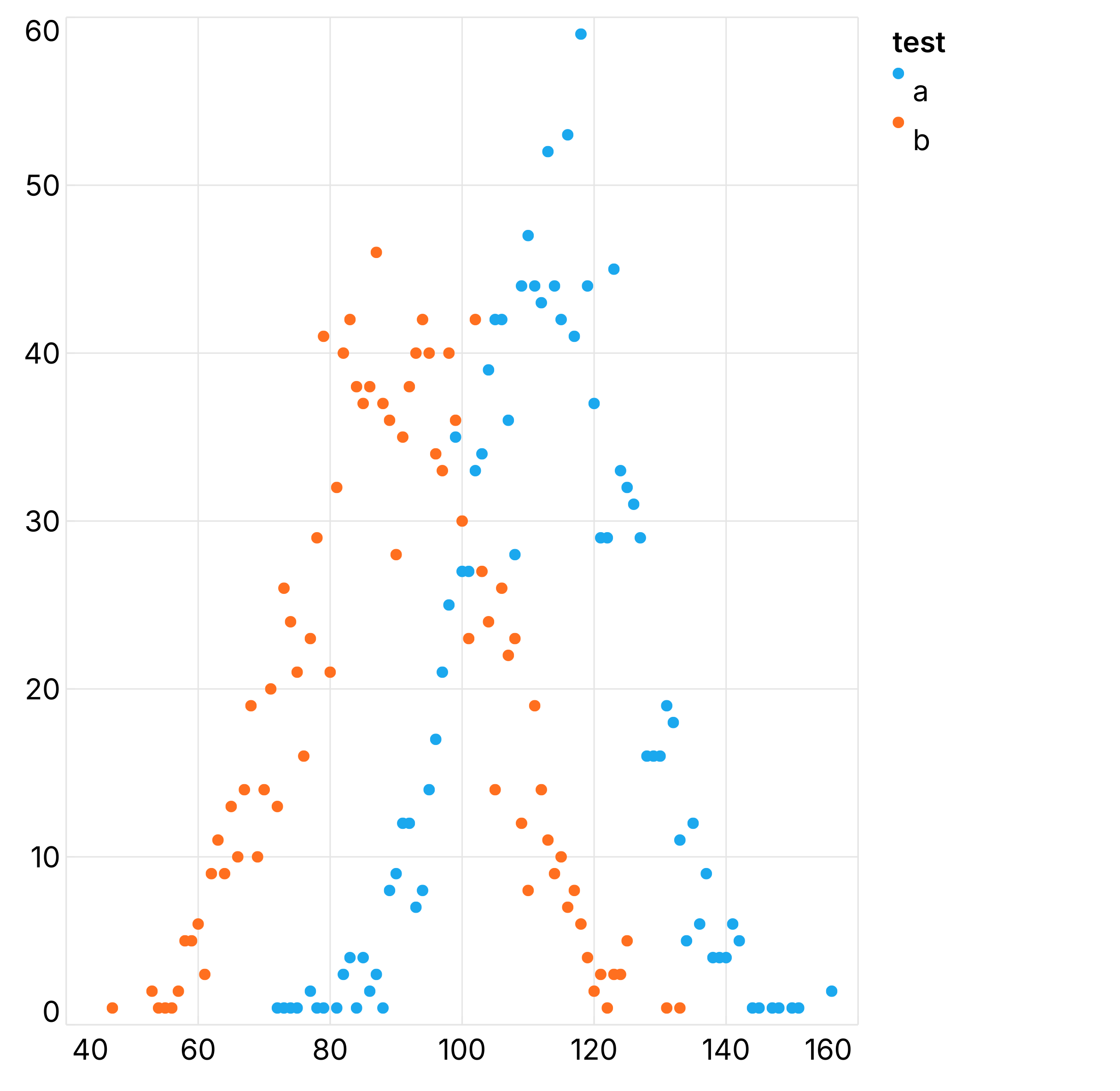 - Set up the scatter plot, selecting the x and y values, adding the A/B test split into Color to differentiate between your groups.