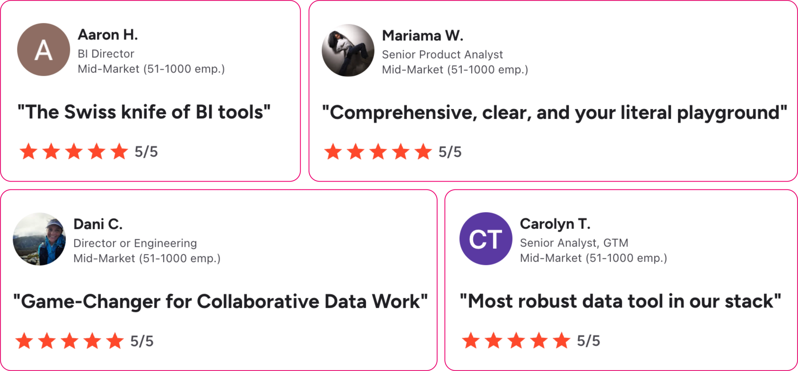 Count is a collaborative analytics canvas with a reusable metrics layer. It brings the whole decision loop - Identify → Explore → Decide → Monitor - into one space where data and business teams work side‑by‑side on live data.