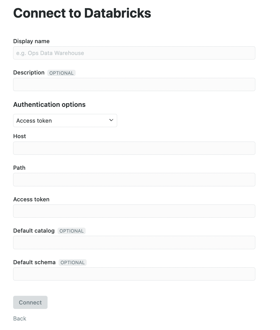 - Once you have logged successfully authorized on the Databricks side, you will be automatically redirected back to your Connect to Databricks page in Count. You'll now be asked for the value of the Client secret obtained in step 3, your Database name, and any other optional properties you wish to configure, including Refresh token validity (see below). The initial code retrieved from Databricks has a very short lifetime (1 minute). Please make sure you complete this step within that time.