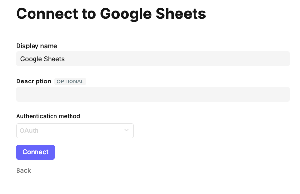 - OAuth authentication: This is the easiest way to connect but may not be suitable for large workspaces with many users. It gives Count access to any Google Sheets that you have access to.