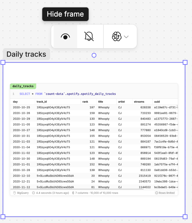 - Across the canvas - make changes without having all cells automatically run by toggling off 'Execute cells automatically' in Design. This will also impact any downstream cells.
