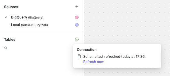 You can also refresh the schema directly from the canvas by clicking the refresh icon in the data bar