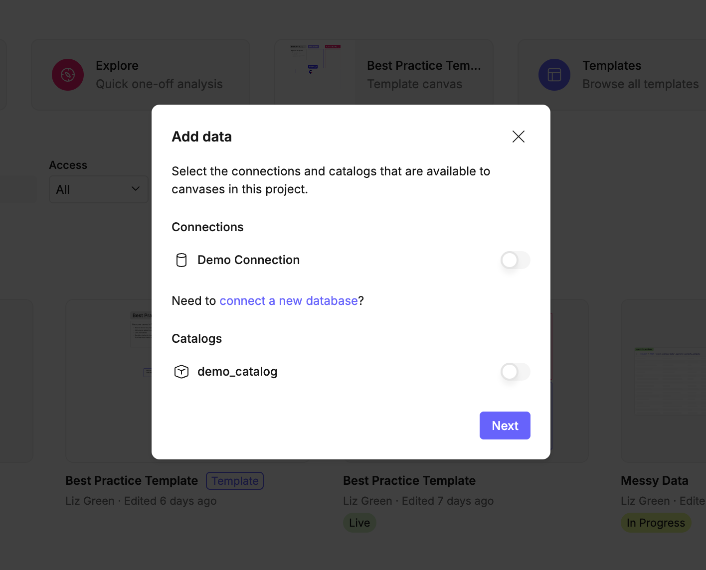 6. Add data to projects - Connect to the data sources relevant for that project.