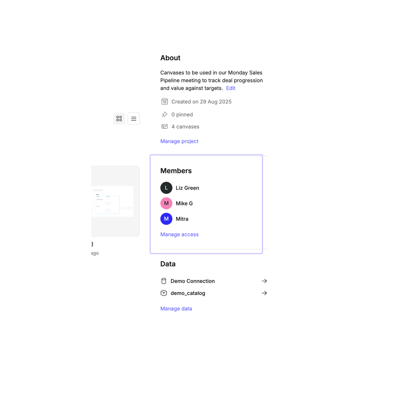 8. Create and pin canvases - click 'New canvas' in a project to add a canvas, and pin frequently-used ones for quick access to frequently used or important canvases.