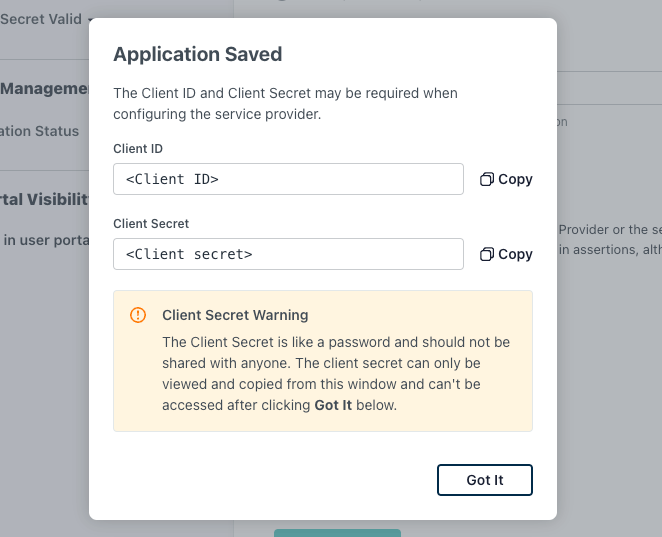 Important - once your app is configured, copy the Client ID and Client secret immediately, as you won't be able to see the secret again:
