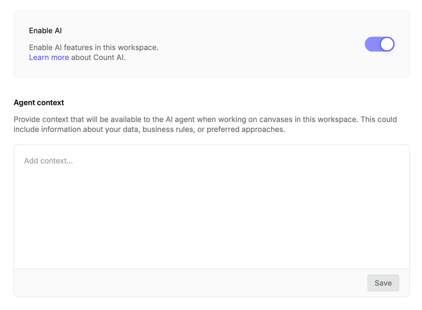 At a workspace-level, there are two options that for the Count AI Agent, settable by workspace owners.