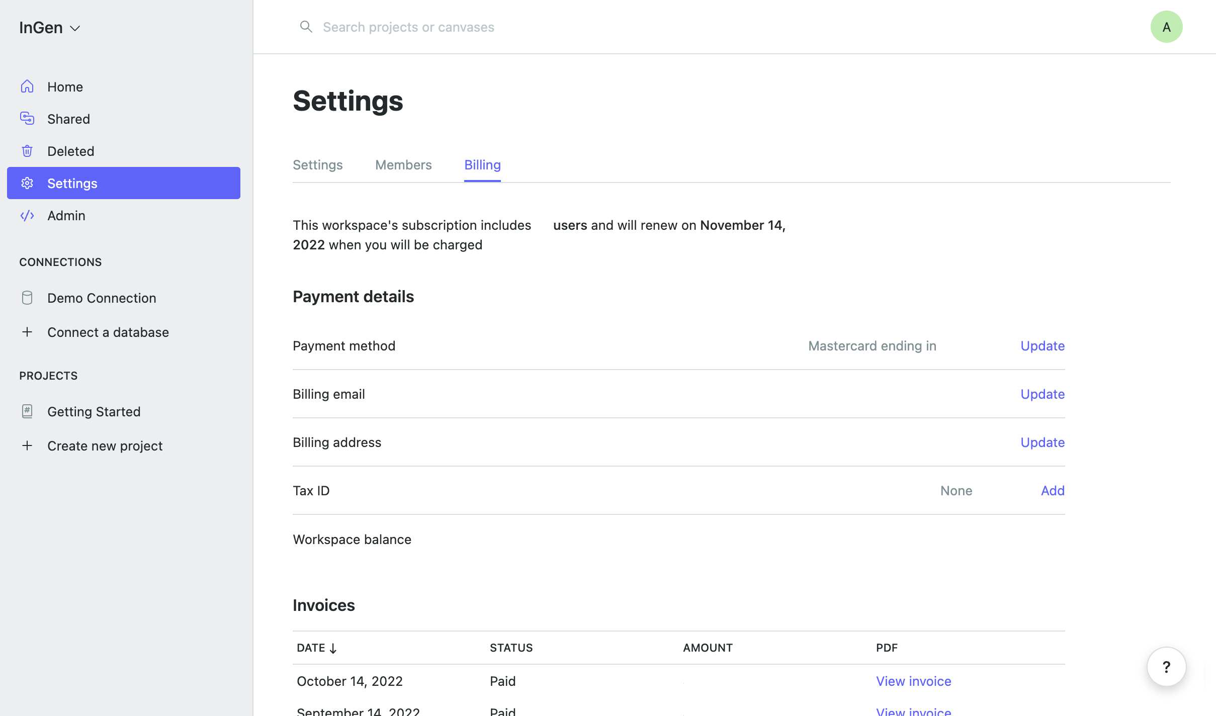 More information on billing and workspace plans can be found in the Pricing FAQ.